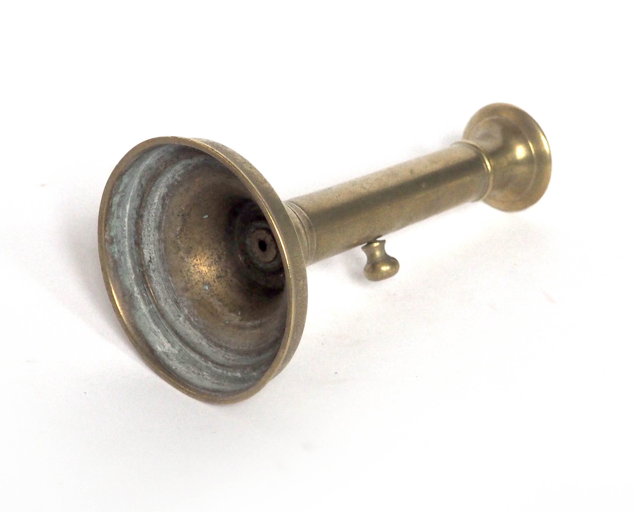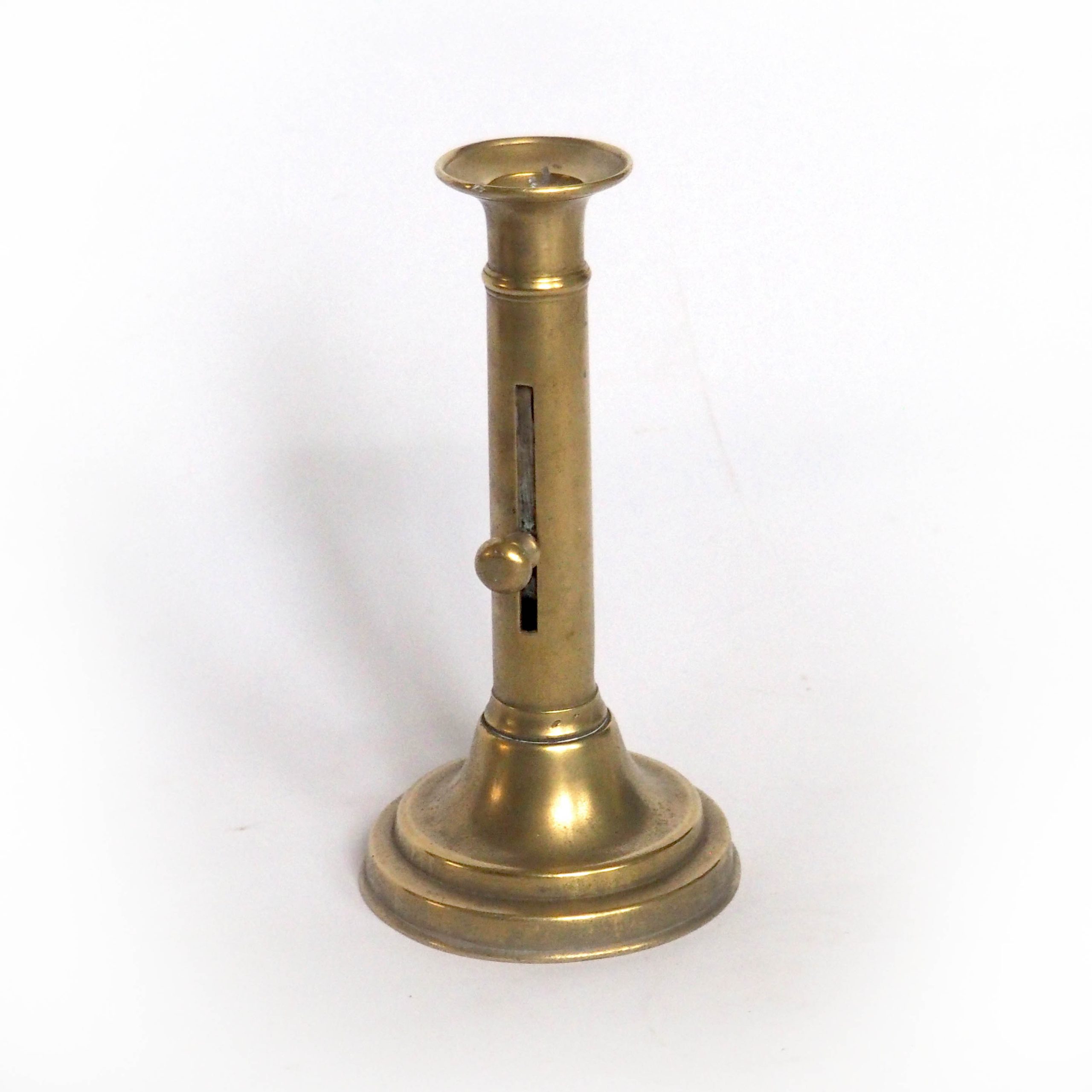 Bougeoir en laiton, forme colonne classique avec bobèche (système qui permet de monter et descendre la bougie au fur et à mesure de l’utilisation). Un classique qui donnera à votre déco une touche authentique et chaleureuse. Dimensions: h 20 cm, diam. 10,5 cm, trou 2,5 cm.